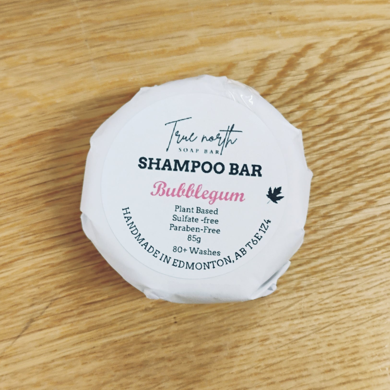 Very bubblegum scented for the kiddos and adults alike! Super gentle eco-friendly plant based shampoo bar. Each bar lasting up to 80 washes and replaces up to 3 plastic shampoo bottles. We use rice bran oil for a silky luxurious feel, and only use natural colorants like clays or herbs.