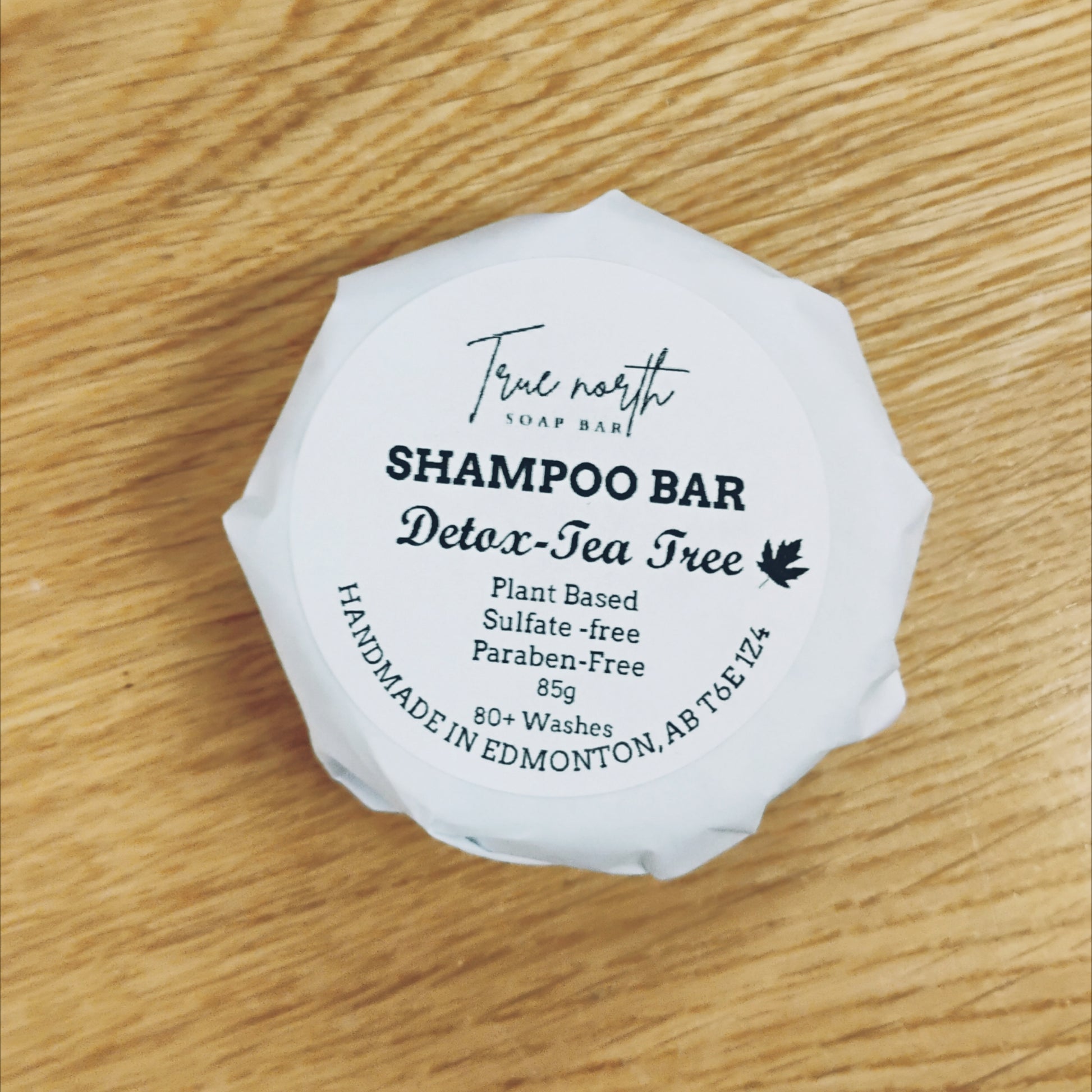 Our detox bar with tea tree essential oil and neem oil in this eco-friendly plant based shampoo bar. Great for flakes, oily, or dry hair.