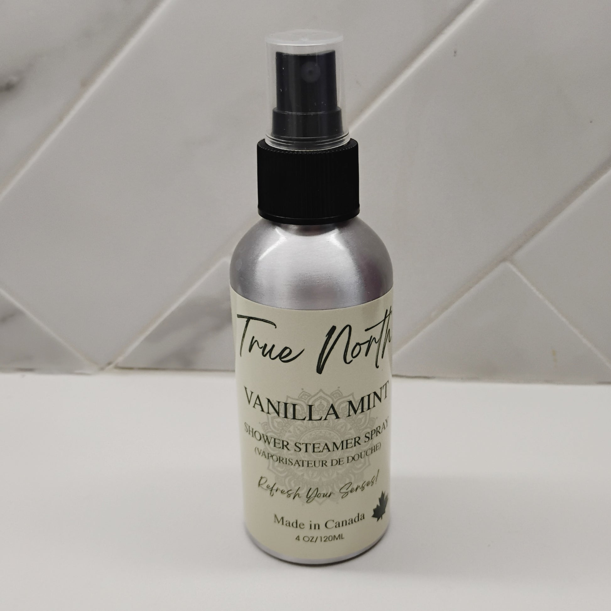 Luxurious Vanilla Mint! Once you are in the shower, simply spray 2-4 sprays on your shower wall waist high pointing the nozzle downwards. Enjoy the refreshing scent of this menthol spray.